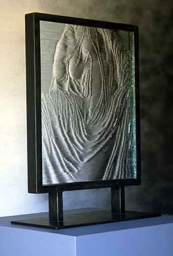 . Float glass and mild steel, 28" x 10" x 20".
